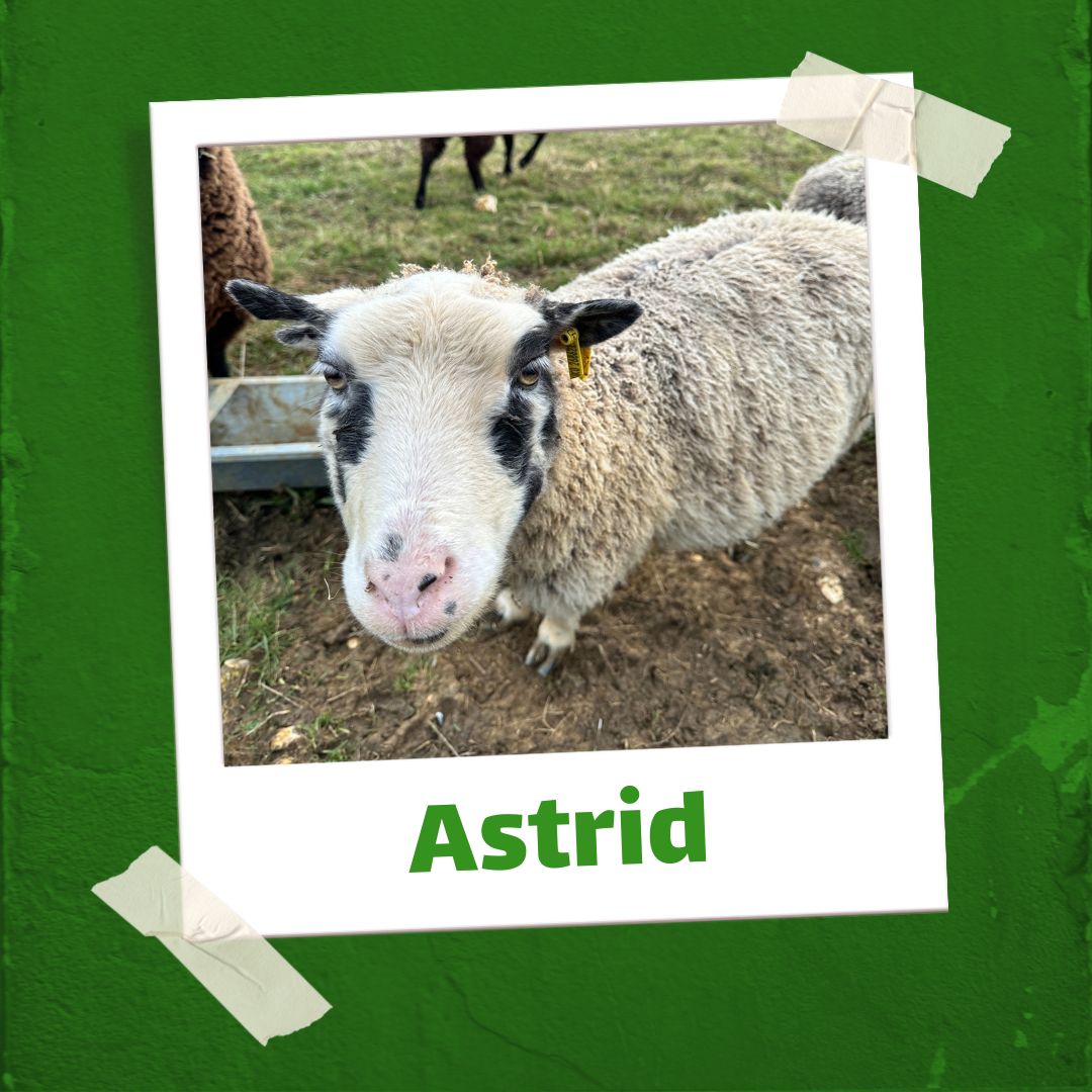 Astrid is a shetland ewe with the most distintive markings. Since being on our farm she has had two sets of twins. We kept her son from last year (thor) and her daughter from this year (Frida)
