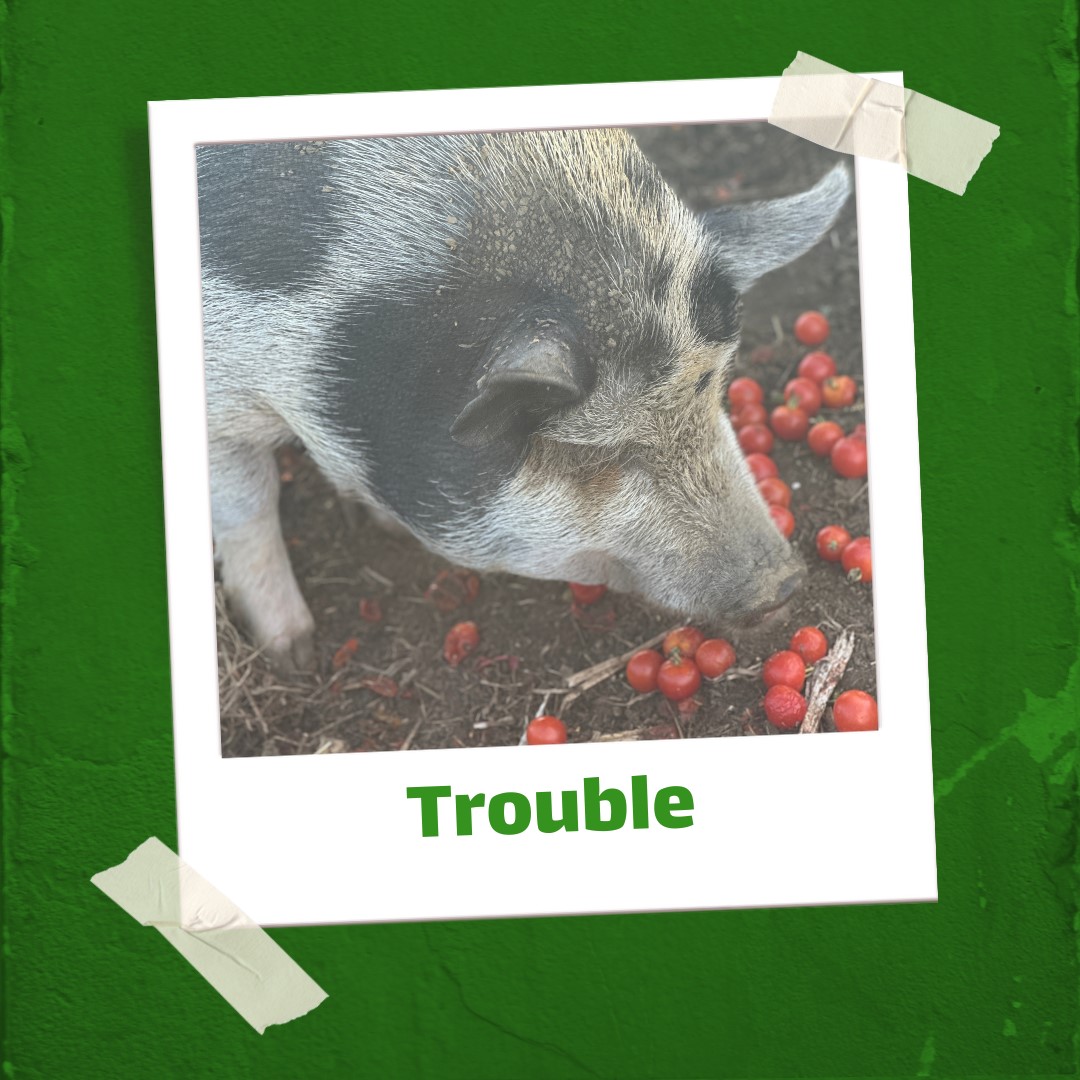 Trouble by name trouble by nature. She is our friendliest pig and loves a belly rub,