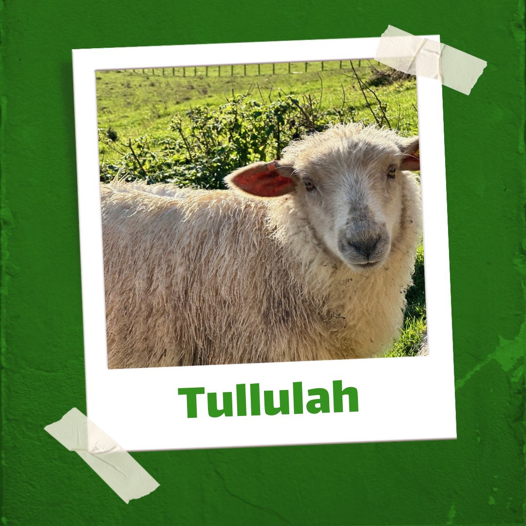 Tullulah was born on the farm in 2023, she was super friendly and more like a puppy. She is still a very friendly ewe.